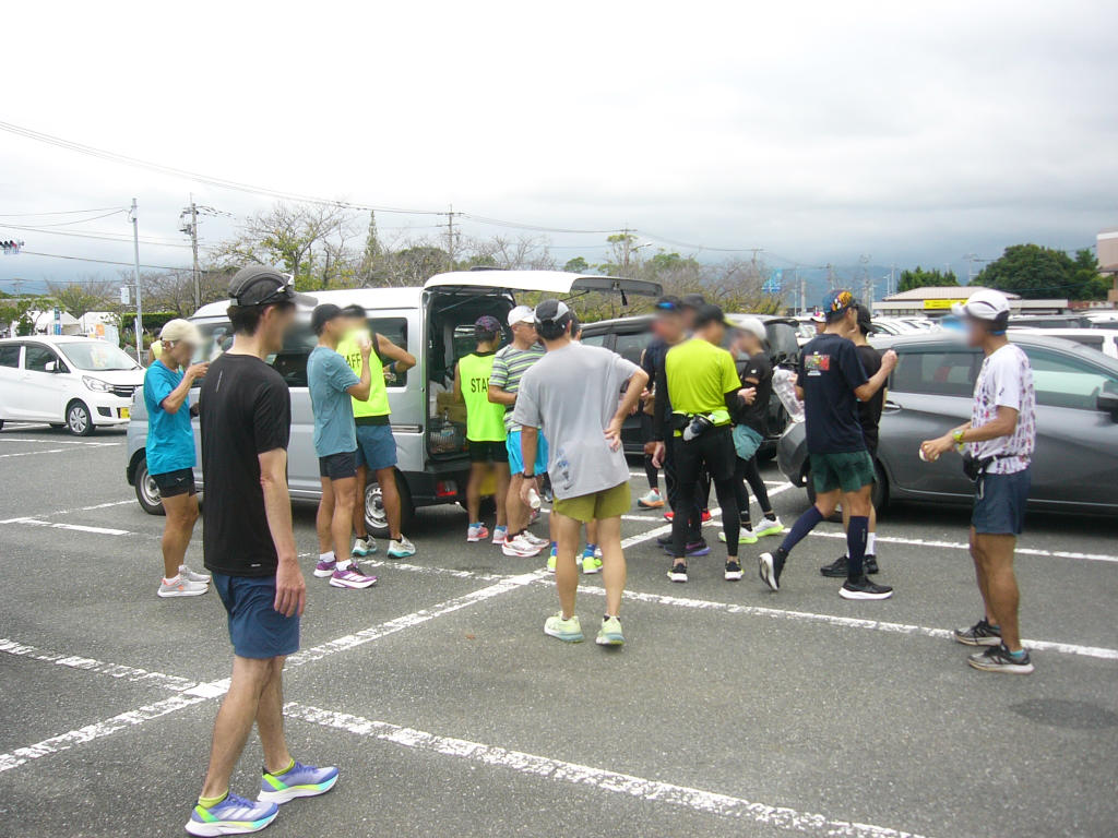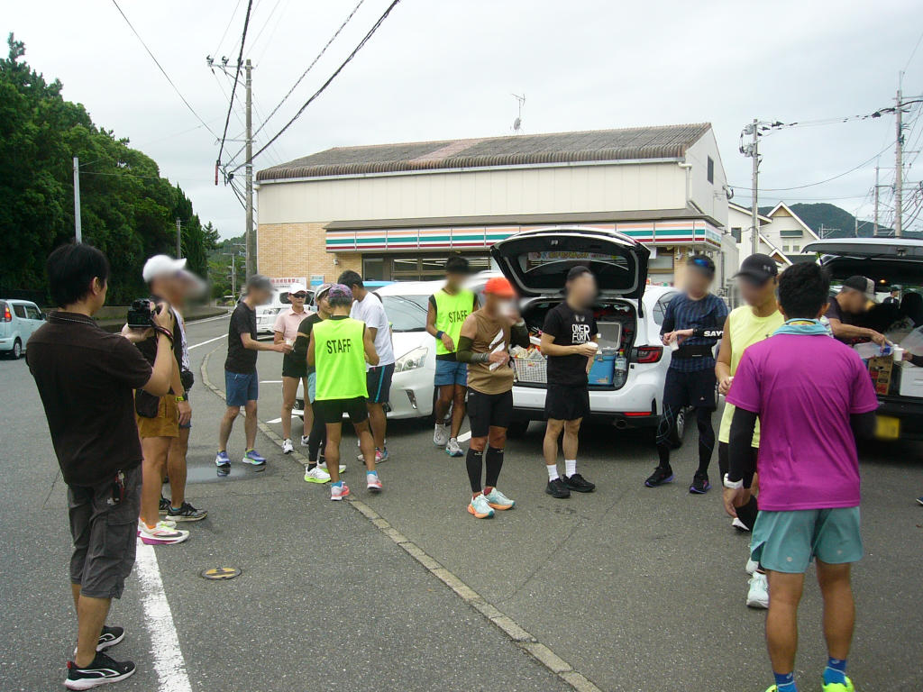 途中にはエイド、駐車場でペットボトルから飲み物をもらえる、が数か所ある。最初のエイドは今津運動公園近くのセブンイレブン。