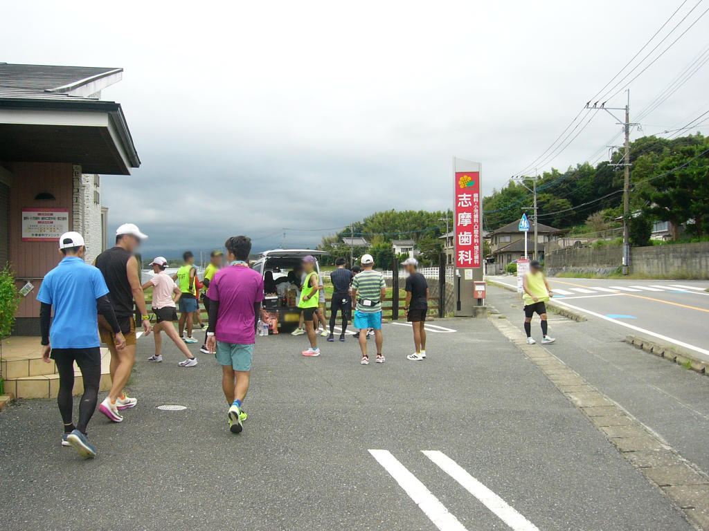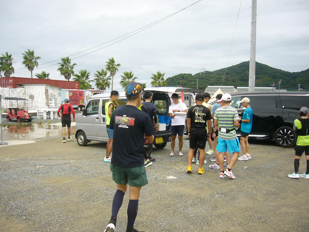 開会式。COOL RUNNINGSという会社主催なのだけど、今日車でサポートしてくれる人たちは社長の奥さんやおじさんだそうで、アットホームな大会。ペースランナーから一言挨拶と準備運動。