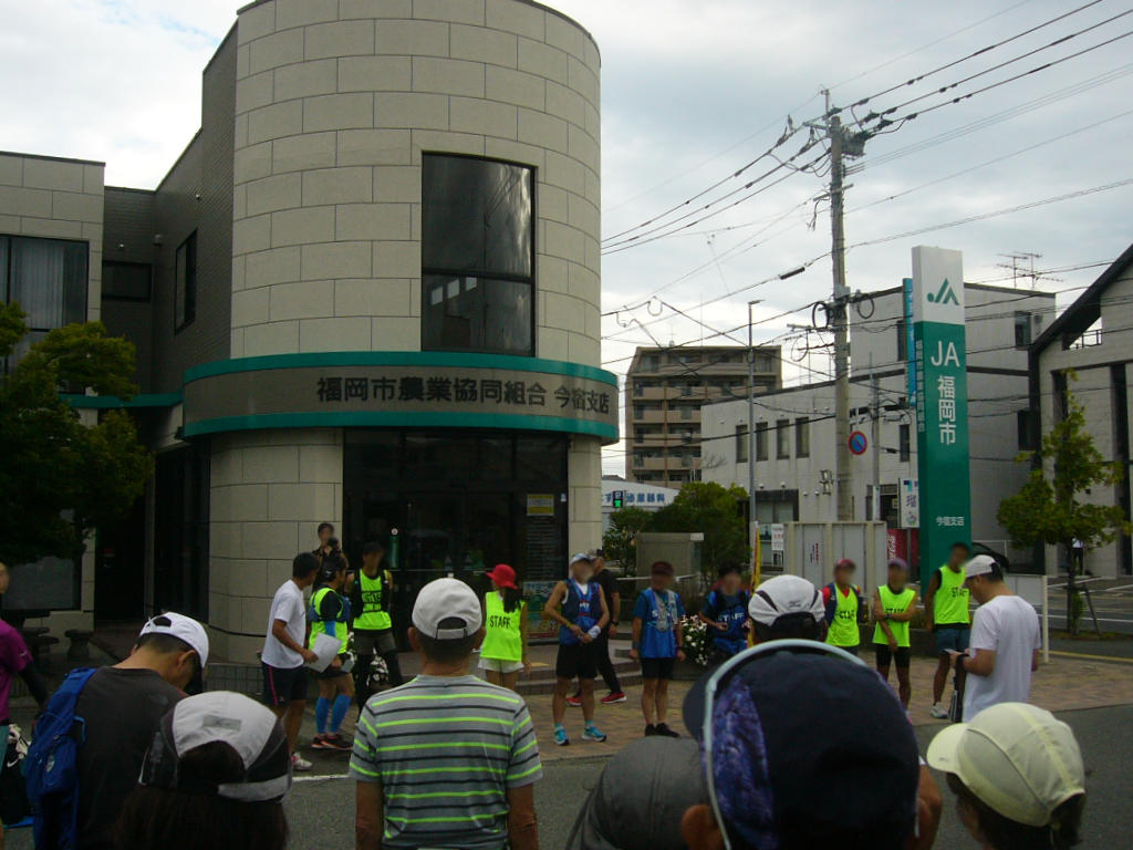 各チーム2名程ペースランナーがつく。もちろん交通規制などはしてないので、普通に歩道を走り、赤信号ではとまる。コースは今津運動公園から福岡マラソンのコースと重なる。