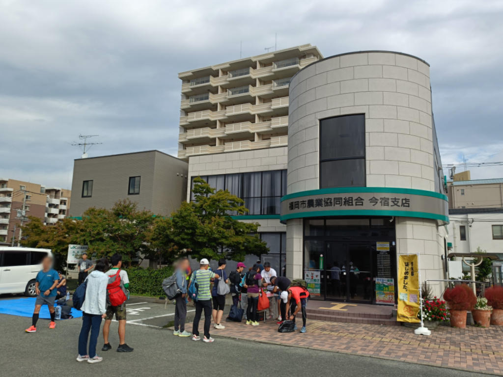 駅からすぐそばにあるJA糸島支店の駐車場が集合場所。すでに受付の列ができていた。